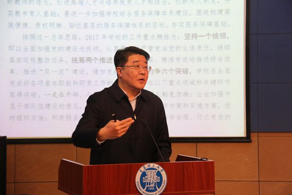 之后,王亚军详细解读了学校党委、行政2017年工作要点,并对做好2017年学校党政工作进行了部署和动员。2017年学校的工作重点为: