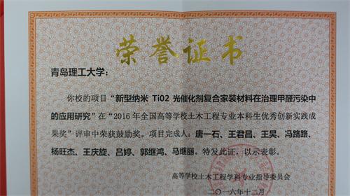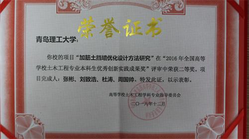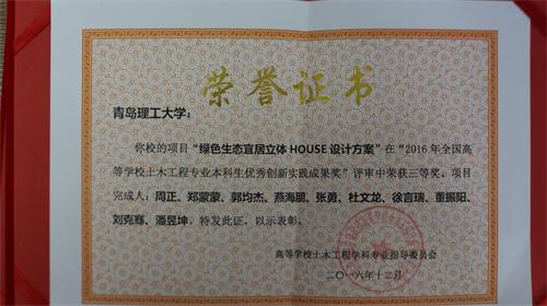 伟德官网学生张彬、刘致浩、杜涛、周国帅同学完成的项目《加筋土挡墙优化设计方法研究》(指导教师:时伟)获得二等奖;周正、郑蒙蒙、郭均杰、燕海明、张勇、杜文龙、徐言瑞、董振阳、刘克骞、潘昱坤同学完成的项目《绿色生态宜居立体HOUSE设计方案》(指导教师:刘文锋)获得三等奖;唐一石、王君昌、王昊、冯路路、杨旺杰、王庆旋、吕婷、郭继鸿、马继丽同学完成的项目《新型纳米TiO2光催化剂复合家装材料在治理甲醛污染中的应用研究》(指导教师:郭思瑶)获鼓励奖。