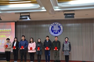 闭幕式上,外国语学院院长巩湘红作总结发言;10位优秀指导教师、英语写作等9项大赛的150名获奖同学及本届文化节评选出的8位“外语之星”上台领奖。颁奖期间,2016外研社杯英语演讲大赛一等奖获得者、机械工程学院陈熠璇同学为大家带来了精彩的英文演讲,外国语学院优秀指导教师王冰作为教师代表发言。