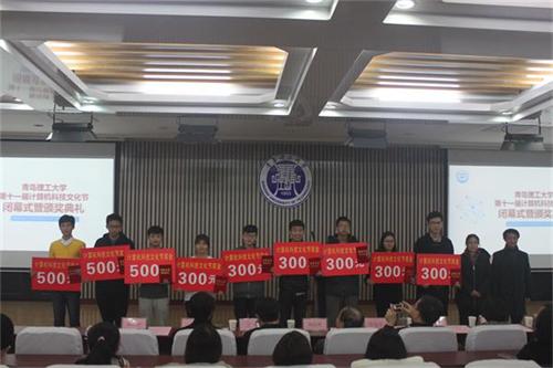 杨向荣致闭幕词。他指出,科技文化节虽然即将闭幕,但同学们对科技的探索却不应随着科技节的闭幕而停止,科学的大门永远向善于思考、勇于创新、不断进取的人们敞开。学校的发展需要同学们,国家的建设需要同学们,社会的舞台属于同学们。愿同学们在今后的学习生活中秉承“百折不挠、刚毅厚重、勇承重载”的理工精神,取得更好的科技创新成果,成为具有创新精神和实践能力的人才。