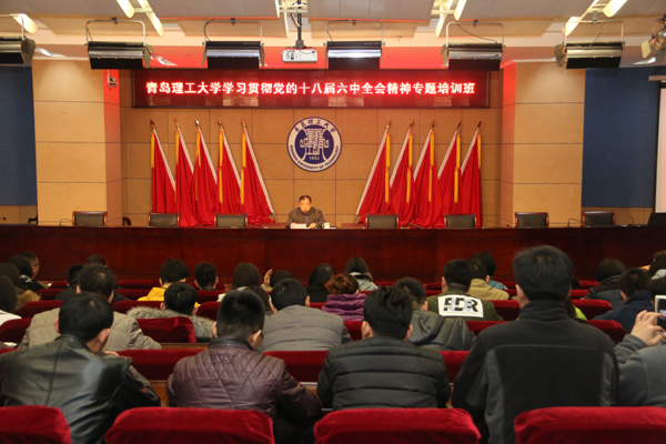 12月11日,学校分别在市北校区、黄岛校区对党总支部书记进行学习贯彻十八届六中全会精神专题培训。校党委副书记杨向荣、副校长李东分别作动员讲话,青岛市委宣传部理论处处长、青岛市党的十八届六中全会精神专家宣讲团成员王春元,青岛市委党校党史党建教研部副主任、青岛市党的十八届六中全会精神专家宣讲团成员刘桂英应邀做专题辅导报告。组织部部长沈文青、宣传部部长陈伟分别主持培训会,全校190余名支部书记参加培训。