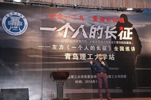报告会过程中,左力从为什么要重走长征路开始讲述,分享了自己亲身经历的故事,回忆了众多革命历史人物和他们英勇奋战事迹,一个个鲜活的形象随着那些扑面而来的故事清晰再现。激扬振奋的故事,精彩丰富的图片,真挚诚恳的分享,给现场师生带来了深深的触动。他对途中所拍摄的图片、撰写的故事、搜集的邮戳进行展示和讲解,讲述长征沿途百姓的淳朴、善良与坚毅,分享自己重走长征路的感悟与心得。他认为长征越来越具有普遍的精神性,它代表着忍耐、坚强、牺牲和百折不回的意志,应和了每个人内心渴望的冒险、献身以及体验艰难险阻的冲动。左力说:“长征锻造出了中国最强悍的一批军人,是理想和信仰的代名词,是人类历史上罕见的不畏艰难险阻的远征。我们要坚信,曾经惊天地泣鬼神的历史画卷,已逐渐在岁月的淘洗中黯淡昏黄,在这个呼唤英雄的时代,我们虽不能成为英雄,但可以成就英雄的梦想。 ”在持续两个多小时的演讲中,左力身体力行传扬历史,用简洁直白而又铿锵有力的方式使在座师生感受长征历史,以独特的个人魅力引爆现场一千四百多名青年学子的英雄情结,用一个人的长征激发起一群人重拾梦想、探求真理的精神远征。现场许多同学一次次红了眼眶,整个会场一片寂静,仿佛听得到每一个人内心震撼与沉痛、使命与责任交杂共鸣的声音。