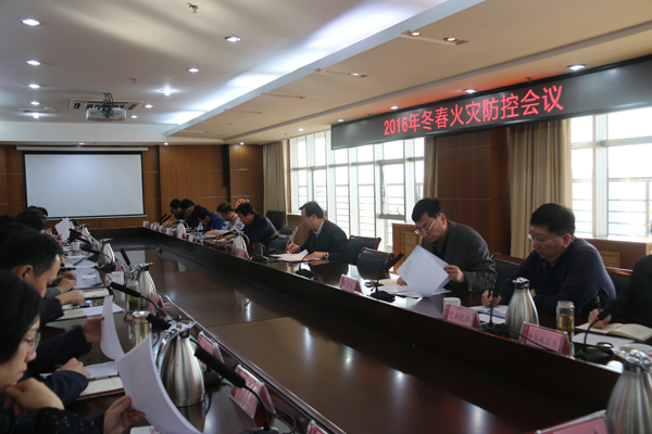 11月15日下午,学校在图书科技楼会议室召开2016年冬春火灾防控会议,副校长李东主持会议并讲话,各部门负责人、各学院党总支书记、院长参加会议。