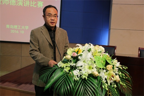 本次师德演讲比赛由教工演讲协会承办,评委由青岛市教育工会主席赵燕美、青岛曲艺家协会副主席王雷、青岛朗诵协会理事贾翠娥、青岛话剧院国家二级演员滕飞、青岛演艺集团专业演员王霖担任。董兰国主持演讲比赛。来自17个教学院部的教师代表用真挚火热的情感表达了勇于开拓进取、弘扬高尚师德的坚定决心,深刻阐述了对师德、师风、师魂的见解,充分展现了校区广大教职工情系教育、心系学生、爱岗敬业、踏实肯干的良好风貌。演讲比赛结束后,青岛朗诵协会理事贾翠娥对比赛进行了点评。