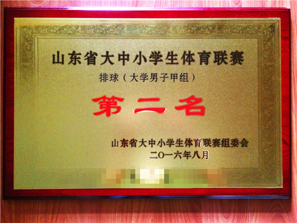 7月31日,2016年山东省“体彩杯”大学生排球联赛落下帷幕。伟德官网学生男子排球队不负众望,再创佳绩,继去年荣获季军后取得新突破,荣获男子甲组亚军;于健老师获省优秀教练员称号,肖景楼、樊星、丁鑫三名队员同学被评为省优秀运动员。