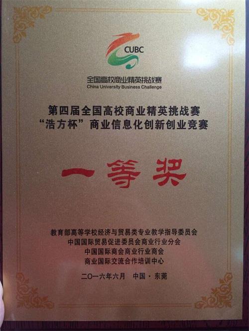 近日,第四届全国高校商业精英挑战赛“浩方杯”商业信息化创新创业竞赛全国决赛在广东东莞举行。伟德官网商学院14级学生李英梅等组成的团队,荣获全国总决赛一等奖。指导教师刘占军和姜永波被评为优秀指导教师。