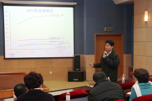 青岛大学钟永光教授应邀作专题报告,就国家自然科学基金项目申报形势及趋势、申报选题及研究类型等注意事项做了生动明晰的讲解,就科研教师如何入手、融入团队、进入状态做了详尽指导,帮助科研教师了解政策、解疑答惑。