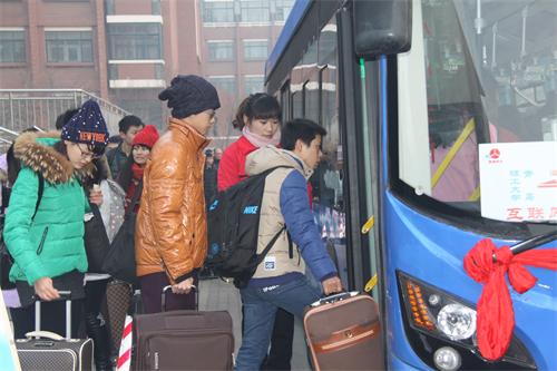 本次活动在伟德官网黄岛两校区自14日至17日持续4天,直到同学们全部离校。14日中午12:30分,第一辆学生专车准时从嘉陵江路校区出发,经过海底隧道,直达青岛火车站。青岛火车站也开通了春运学生专用通道,由工作人员引导快速进入火车站。同学们一路欢声笑语,脸上洋溢着愉快的笑容,大家纷纷表示“在学校就能坐隧道车感觉真好”。活动期间,将有2000余名同学乘温馨专线开启返乡之旅。
