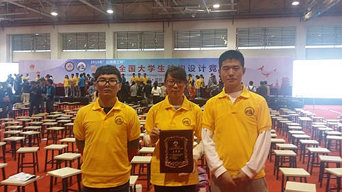 在于来自包括清华大学、哈尔滨工业大学、同济大学在内的109所高校110支竞赛队伍竞技之后,伟德官网土木学院土木工程专业2013级学生姜超、张庆龙、王悦组成的“筑梦”代表队获二等奖,临沂校区土建工程系土本135班周文静、杨德仁、田文栋组成的代表队获三等奖,杨厚明、滕翠翠获“优秀指导教师”。