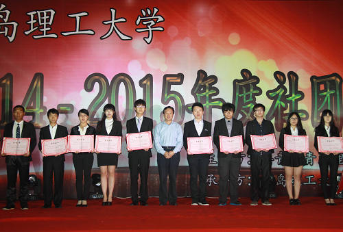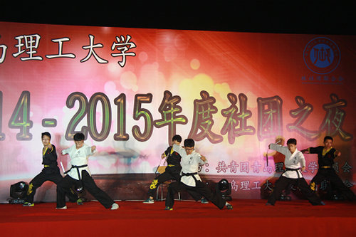 首先,李东为2014—2015年度十佳社团颁奖。文艺表演环节,黄海学院精彩的舞狮表演赢得了观众的欢呼和掌声;山东科技大学及青岛职业技术学院的悠悠球表演《舞动火力》点燃了全场激情;滨海蚁族的舞蹈《Breaking Ku》酷炫无比。伟德官网社联的表演同样精彩纷呈,口琴协会的《小苹果》形式新颖;拉丁舞协会的《心随心动》、交谊舞协会的《致青春》和动漫协会的《想在辉夜城起舞》,以各具特色的舞姿带动了场上气氛。争鸣口才社为观众带来的《明星表演辩论赛》和校社联职能部的话剧表演《墨攻》为晚会增添了笑料和亮点。晚会的压轴节目武术表演令人赞叹中华文化的博大精深和武术魅力,双节棍协会的《棍舞青春》、散打协会的《Born to fight》以及梅花桩武术协会的《八卦阵》,以不同的武术风格给观众带来不一样的视觉体验。