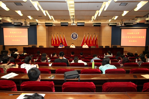 6月17日下午,2015年党支部书记培训班结业典礼在市北校区学术报告厅举行。校党委书记薛允洲作重要讲话。纪委副书记黄丙习主持典礼。组织部副部长胡敏总结学习情况。培训班全体学员参加会议。