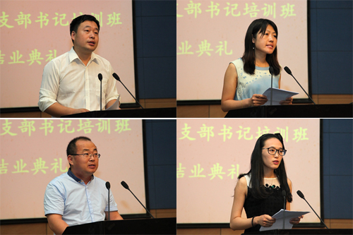 土木工程学院党总支学生第二党支部书记邵先锋,理学院党总支专业数学党支部书记姚惠萍,机关三党总支行政党支部书记王良忠,研究生党总支研究生1308班党支部书记徐琳作为学员代表分别发言交流学习感想与心得体会。
