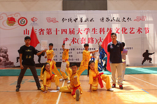 6月6日,山东省第十四届大学生科技文化艺术节武术(套路)大赛在山东体育学院落下帷幕。临沂校区代表队夺得团体项目冠军,工程管理系造价143班学生左斌豪获剑术第三名、长拳第四名,工程管理系建管141班学生郭树远获太极剑第五名。