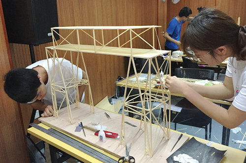 本次竞赛模型为双塔连体结构房屋模型,采用竹质材料制作,并在加载现场施加竖向荷载、水平荷载,水平力偶荷载来考验建筑模型的承载能力。通过对各参赛队在设计计算、结构选型与制作质量、现场表现、加载表现四个环节中分别评分,综合评定各队总得分。伟德官网两支参赛队伍的模型方案结构体系合理,构思新颖,制作精良,加载性能良好。