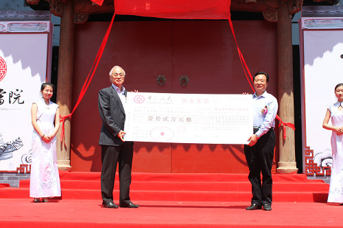 5月24日上午,在伟东集团崂山书院国学大典暨开园典礼上,伟东集团总裁刘钦星先生代表集团向学校捐赠12万元助学金,李东副校长代表学校接受捐赠并讲话。