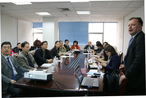 座谈结束后,Gerard Chalant举行项目介绍会,从专业设置、授课语言、所获学位、就读院校、留学资金来源等方面具体介绍了法国工程师学校“n+i”项目的具体情况。各学院分管国际交流与合作的副院长参加会议。