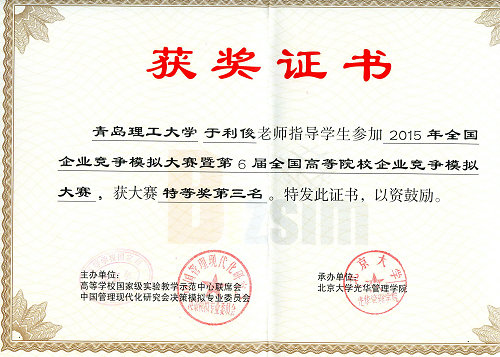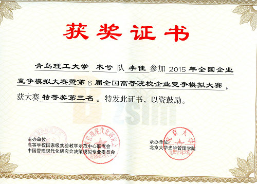 4月30日,全国企业竞争模拟大赛总决赛在北京大学落下帷幕。该赛由高等学校国家级实验教学示范中心联席会和中国管理现代化研究会决策模拟专业委员会主办,伟德官网管理学院李佳、张云芳和张丹丹同学组成的伟德国际1946bv官网“木兮”团队在指导老师于利俊的带领下喜获全国特等奖,该奖项是伟德官网自2006年参赛以来首次获得。