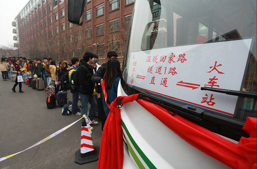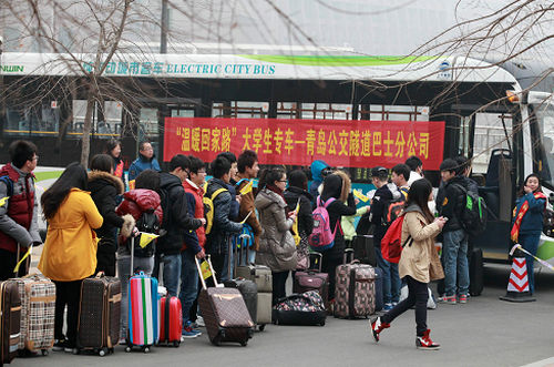 “温暖回家路”爱心公交与机场直通车的开通,为在寒冬中返乡学子送去了浓浓的温暖,也体现了学校对全体理工学子的深切人文关怀。经过各方紧密配合,通力合作,活动取得良好反响和效果,齐鲁晚报、青岛电视台、半岛都市报、青岛晚报等多家媒体对活动进行了广泛报道。(团委)