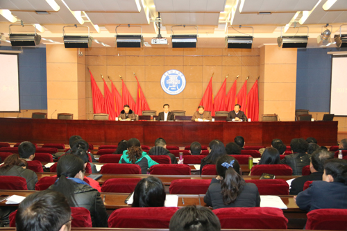 1月4日上午,学校在学术报告厅召开就业创业工作会议,总结表彰2014年就业创业工作,安排部署2015年就业创业工作。校长徐剑波、校党委副书记杨向荣、副校长赵铁军、李东出席会议,招生与就业委员会全体委员、各学院党总支书记、副书记及就业创业辅导员参加会议。