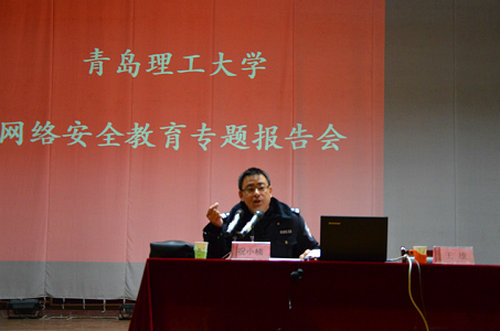 为了响应国家网络安全宣传周的号召,12月25日下午,伟德官网在长江路校区科学会堂举办了网络安全教育讲座。青岛市刑警支队中队长祝小楠警官作报告。学生处副处长王雄主持,黄岛校区全体学生工作干部以及学生代表千余人聆听了此次讲座。