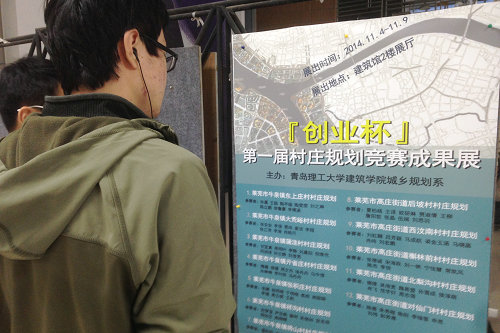 为响应国家新型城镇化建设要求,结合城镇化大背景下山东省部分农村村庄布局不合理等问题,组织引导广大青年学生深入社会、了解国情、接受锻炼,建筑学院、招就办联合莱芜市规划局,举办了村庄规划竞赛活动,竞赛成果展在建筑馆2楼展出,时间自11月4日起至11月9日止。