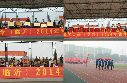 10月18日,临沂校区2014年秋季田径运动会在田径场举行, 临沂校区副校长朱卫东致开幕辞,临沂校区副校长孙张飞致闭幕辞,临沂校区党委副书记王西长主持开幕式、闭幕式,学工部、各系(部)相关负责同志出席开幕式和闭幕式,体育教研室主任闫炳才宣布比赛成绩,学工部科长窦传海宣布获得精神文明班级名单,教师董谷雨、学生于子龙分别代表裁判员、运动员宣誓。