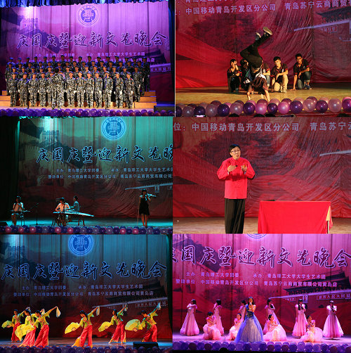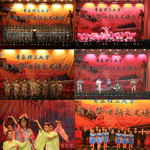 9月25日晚,由校团委主办、大学生艺术团承办的青岛理工大庆国庆暨迎新晚会分别在市北校区、长江路校区举行。校党委副书记杨向荣、副校长李东出席,承训部队教官,团委、宣传部、学生处、黄岛校区办、教务处、后勤处等部门负责人及各学院师生观看演出。