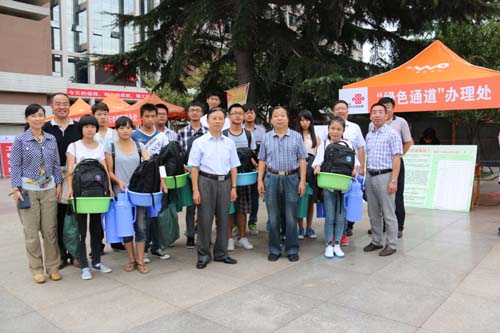 在绿色通道办理处,薛允洲、徐剑波关切地询问困难生报到的有关情况,并为困难新生发放爱心大礼包,勉励他们要珍惜大学时光、好好学习、尽快融入大学生活。