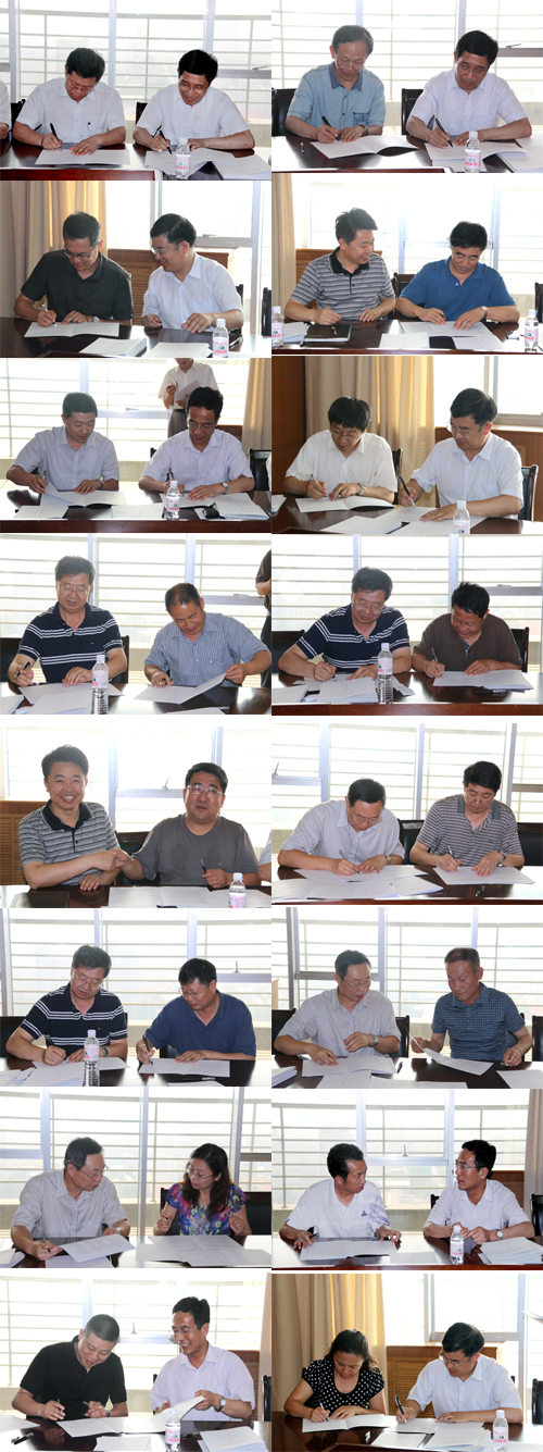 在6月中旬,徐剑波与各职能部门签订责任书的基础上,会上,教务处、科技处、人才与学科办、研究生处、人事处、国际交流处6个职能部门与17个教学院部分别签订了责任书。