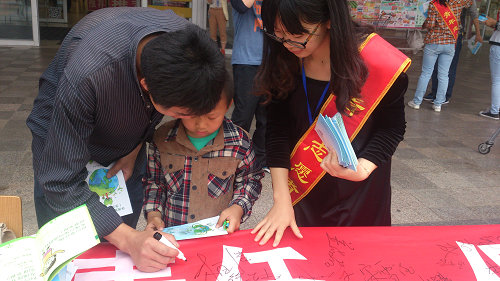 伟德官网志愿者在环保局的统一安排下,向市民发放各类环保宣传手册、讲解环保知识,并引导市民在“齐参与,同努力,共责任——保护环境,从我做起”条幅上郑重签下自己的名字。活动现场有父母手把手的教自己还不识字的孩子,在横幅上一笔一划的写下自己的名字;步履蹒跚的老奶奶也积极得参与到活动中,老人家感叹道“保护环境好”。志愿活动吸引了大批市民前来参与,市民们纷纷称赞志愿者们的奉献精神。