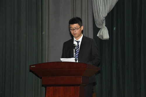 通信学院通信104班学生史文哲代表全体获奖同学发言。他对学校、老师多年来的辛勤培养表示最衷心的感谢,他表示,要以报效祖国的远大志向,朝气蓬勃的精神风貌,自强不息的意志品格,甘于奉献的思想境界,以实际行动肩负起建设祖国的重任,谨记母校和老师的嘱托,勤学、修德、明辨、笃实。