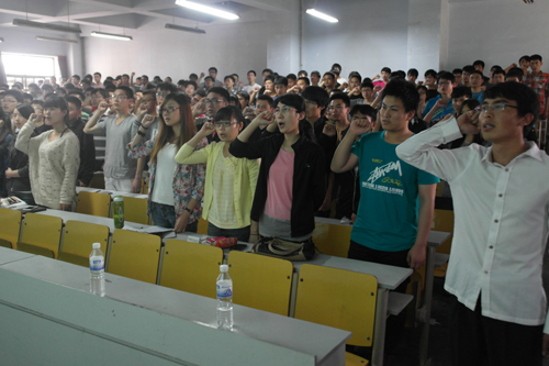 讲座前,学生处副处长于波及资助中心人员与中国人民银行青岛分行统计处副处长耿昭、黄岛支行副行长于兵进行了座谈,双方就大学生诚信教育、生源地学生助学贷款等方面工作进行了交流。讲座结束后,全体贷款毕业生举行了“诚信励志节约”宣誓仪式,庄严承诺:珍惜个人信用,牢记理工精神,诚信做人,勤俭节约,俭以养德,俭以励志。