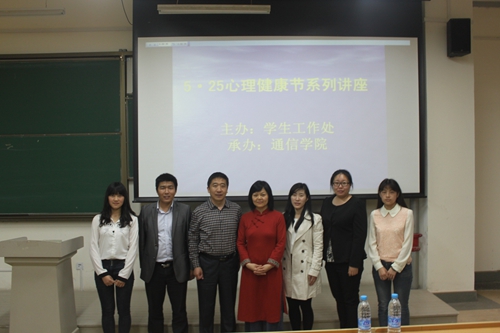 近日,由学生处主办、通信学院承办的“5·25”心理健康节专题讲座“与自己相遇”,在嘉陵江路校区开讲。该讲座由国际注册高级心理咨询师艾瑞老师主讲。学生处、通信学院相关负责人、校区各学院心理健康联络员及300余名学生参加。