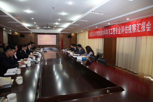 以住建部高等教育给排水科学与工程专业评估委员会委员、中国市政工程中南设计研究总院副院长、总工、教授级高工邓志光为组长,住建部高等教育给排水科学与工程专业评估委员会委员、全国高校给排水科学与工程专业指导委员会委员、苏州科技学院党委副书记、教授黄勇,中国建筑业协会建筑工程技术专家委员会委员、中国航天建设集团有限公司总工、教授级高工任向东,四川大学建筑与环境学院党委副书记、教授张永丽为成员的评估专家组听取了汇报。