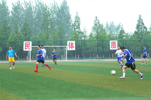 本着“交流感情、增进友谊”的比赛原则,各球队在赛前积极沟通、充分准备,详细安排赛程,保证了本次足球友谊赛顺利、友好进行。比赛中,各领队精心排兵布阵,裁判员公正判球,运动员积极跑位,球员摔倒后争相伸手相扶,现场观众激情助威,一幕幕动人图景展示着青春昂扬,体现着友好和谐。比赛不久的中雨,非但不能减缓球员的脚步,相反催生出足球传递的无限激情和真挚情谊。