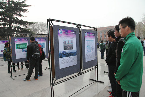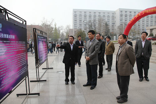 开幕式后,与会领导及学生代表参观了2013年大学生科技创新活动成果展。