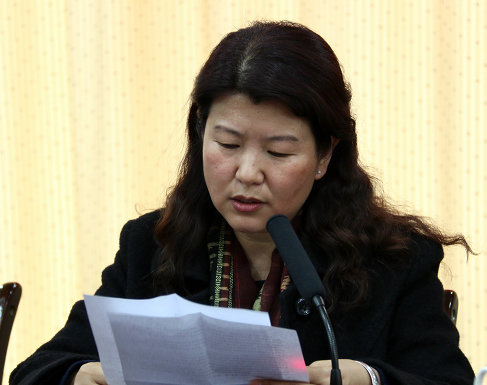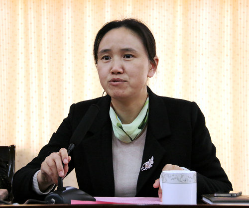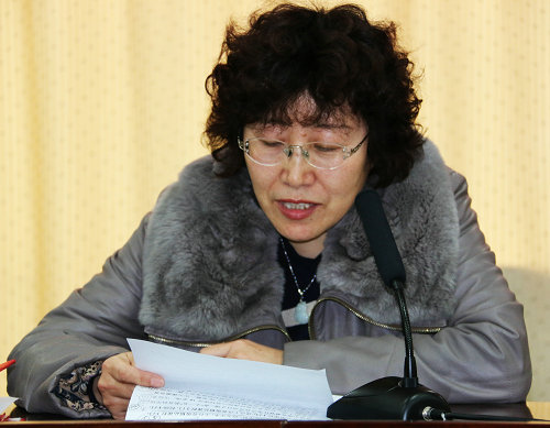 原妇委会主任王燕宣读获青岛市荣誉称号的集体和个人名单