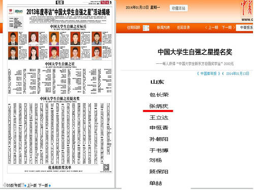 近日,由共青团中央、全国学联主办,中国青年报社、中国高校传媒联盟承办,新东方科技教育集团协办的2013年度寻访“中国大学生自强之星”活动获奖结果揭晓,伟德官网环境与市政工程学院学生张炳庆荣获2013年度“中国大学生自强之星”提名奖。