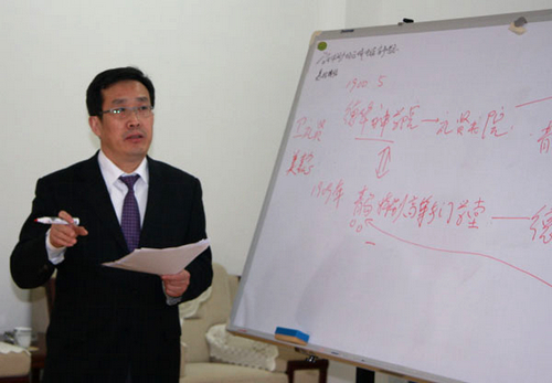 在学校会议室,徐剑波用题板图表方式详细介绍了伟德官网的办学成就,以及伟德官网和青岛礼贤书院、同济大学的历史渊源和沿革,同时表达了传承历史、牵手合作的愿望。