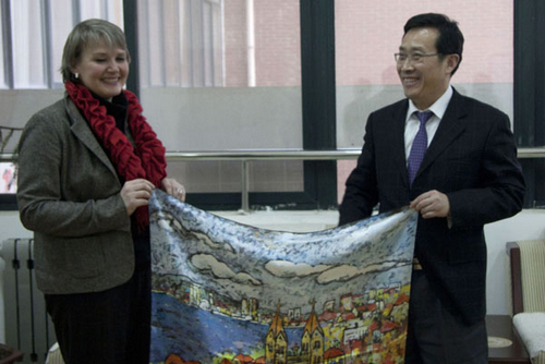 李国华副校长、校区办主任齐德义、建筑学院副院长刘崇和国际交流与合作处处长刘春堂等陪同接待并向客人赠送了纪念礼品。(国际交流与合作处)