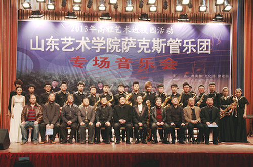 “山东艺术学院萨克斯乐团”是国内首家成立的院校乐团,乐团成员由在校萨克斯管专业的学生组成。山东艺术学院音乐学院自开设萨克斯专业以来,已为社会培养了众多优秀专业人才。该乐团是省内第一支萨克斯专业团体。
