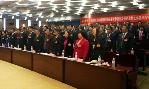 上午8:30,大会在庄严的国歌声中开幕。中共山东省委高校工委副书记傅华峰,中共山东省委组织部干部四处副处长陈玉平,中共山东省委高校工委组织统战处处长冷健以及学校老领导王兆纶、郑锡昌出席大会。
