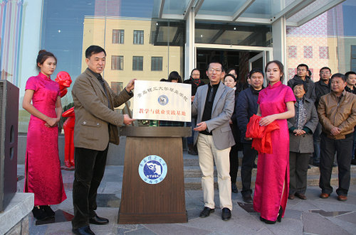 隋玉桂宣布“青岛油画城走进大学校园”油画展开幕,张为众、肖文津为学院教学与就业实践基地揭牌。仪式结束后,师生参观了画展。