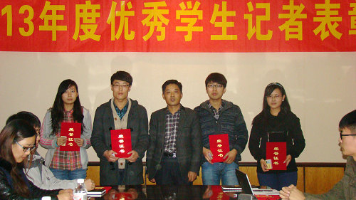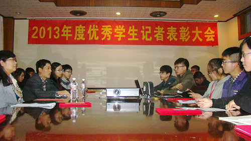 在黄岛校区,11月15晚,黄岛校区办公室还举行了2013年度优秀学生记者表彰会。会上,黄岛校区办公室宋兆珺副主任、政工科科长祁文茹分别就学生记者在学校宣传工作的重要性和下一步努力方向与学生记者们进行座谈,并表彰了2013年度优秀记者。