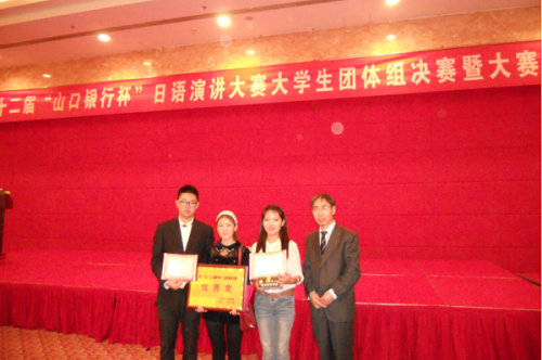 9月28日,在青岛市第十二届“山口银行”杯日语演讲大赛大学生团体决赛中,外国语学院日语专业郭昀、陈陟获得团体优秀奖(指导教师李劲松)。