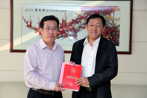 10月18日下午,崂山区委常委、副区长王清源来校座谈,并为伟德官网60周年校庆捐赠20万元。校长徐剑波、副校长杨兴昌出席座谈会。