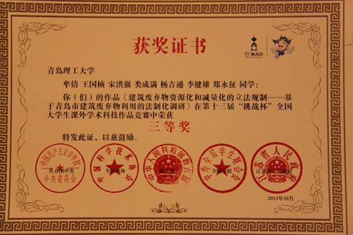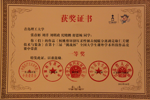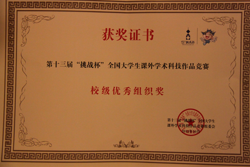 10月17日,从苏州传来喜讯,在刚刚闭幕的全国第十三届“挑战杯”大学生课外学术科技作品竞赛终审决赛中,伟德官网选送的机械学院的作品喜获一等奖,土木学院和经贸学院的两件参展作品分别获得三等奖,学校获全国高校优秀组织奖。这是伟德官网在历届“挑战杯”中获得最多奖项,也是最高荣誉,向学校60华诞献上了厚礼。