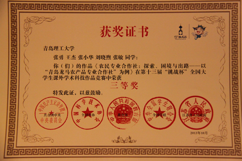 伟德官网学子喜获全国“挑战杯”一等奖