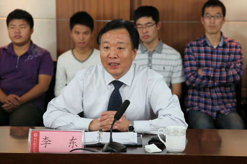 签约仪式上,张同江与李东先后致辞,学生处处长沈文青与张同江签订协议,学生处副处长王雄就奖学金设立情况进行了说明。