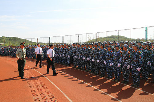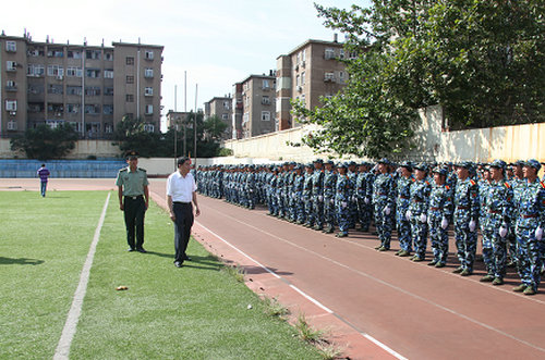 阅兵仪式在雄壮的国歌中开始。刘龙海副书记、李东副校长、张伟星副校长分别在承训部队军官的陪同下逐一检阅各方队,同学们高喊着嘹亮的口号,以饱满的热情和高昂的士气,迈着铿锵有力的步伐接受检阅。今年,增加了新的科目,各方队先后进行了队列养成、军体拳、擒拿格斗基本功、匕首操、战术突击方队的汇报表演。
